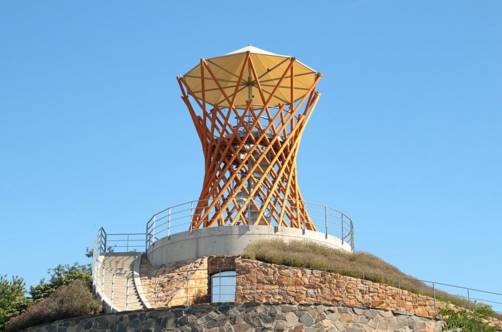 Rozhledna u přívozu v Lovosicích: výhled na České středohoří i historiiV Lovosicích, nedaleko přívozu, se tyčí originální vyhlídka postavená na uměle navršeném kopci. Právě na tomto místě stála už v roce 1869 první rozhledna, dnešní moderní verze zde byla vybudována v roce 2019.Rozhledna dosahuje výšky 7,3 metru a zaujme svým neobvyklým tvarem rotačního hyperboloidu. Konstrukci tvoří čtyřicet dřevěných kůlů, každý téměř dvanáctimetrový, které jsou pevně ukotvené do železobetonového základu. Uvnitř se vine kovové točité schodiště, které návštěvníky zavede na zastřešený ochoz ve výšce čtyř metrů.Z ochozu se otevírá kruhový panoramatický výhled na řeku Labe, Lovosice, horu Lovoš i vrch Radobýl u Litoměřic. Díky své poloze nabízí rozhledna krásné pohledy na okolní krajinu Českého středohoří.Zajímavostí je samotný kopec, na kterém rozhledna stojí – byl uměle vytvořen a dříve sloužil jako lednice. Ukládal se sem led, který se používal ke chlazení piva v nedaleké restauraci.